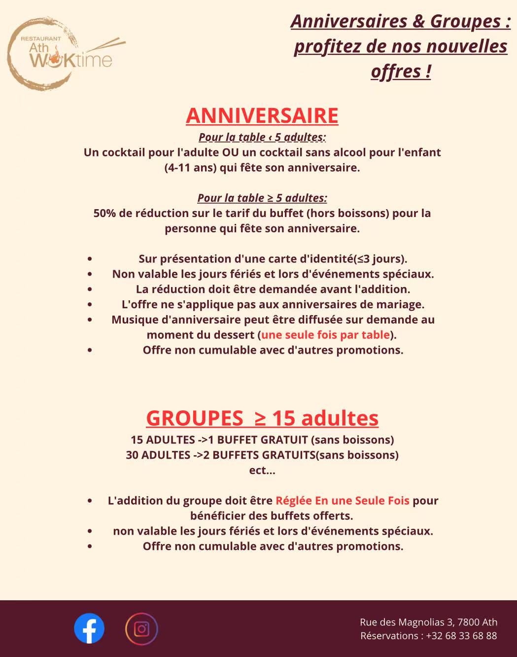 Moins de 5 adultes : un cocktail (avec ou sans alcool) offert pour qui fête son anniversaire.(adulte ou enfant).